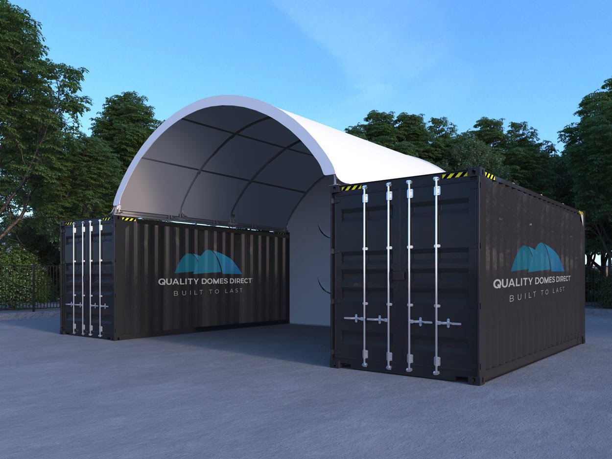 Buy 20x20ft (6x6m) Quicklock Commercial Grade Dome with semi permanent end wall Online | Container Shelters and Portable Domes for 20ft Containers