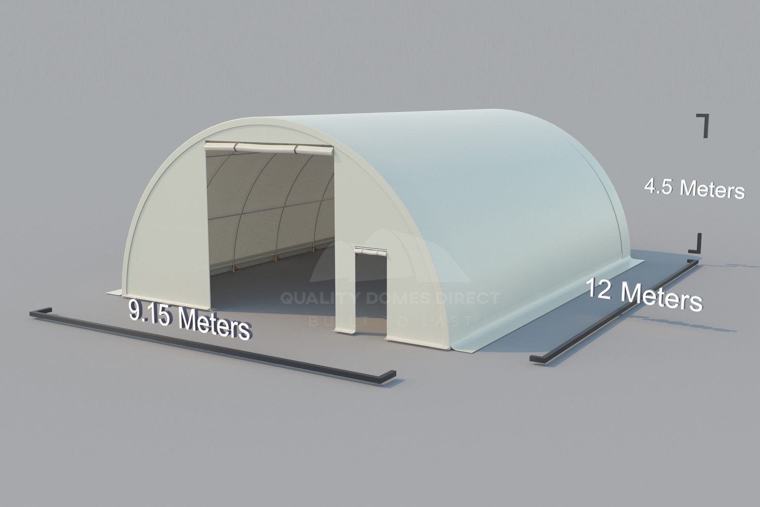 Large, 12m long by 9.15m wide Workshop Shelter with 3.58m x 3.58m entry doors: Engineered protection for year-Round productivity.