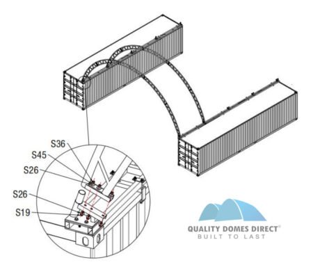 • This expansive 40x40ft (12x12m) double truss bolted industrial-grade container shelter features a robust truss design with a bolt-through inline truss connection plate, delivering superior structural performance.