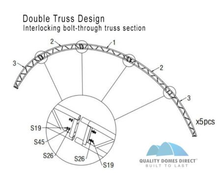 • Double truss dome arches for extra strength and support.