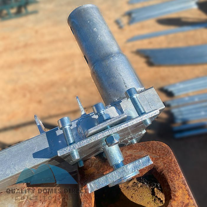 We’ve made it super-easy to assemble and install this shelter, because of the Quality Domes Direct Quicklock ‘no weld’ design. Simply connect the roof truss base plates to the top of the container with simple twist and lock movement, then add the base plate rails and secure with C-clamps and bolts.