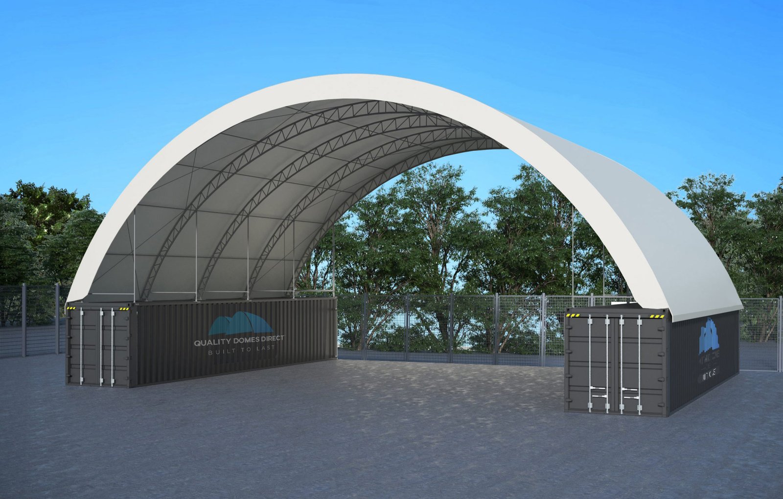 Utilising 40ft shipping containers as a sturdy base, this large domed shelter provides secure storage for construction supplies to heavy machinery, equipment, and even livestock.
